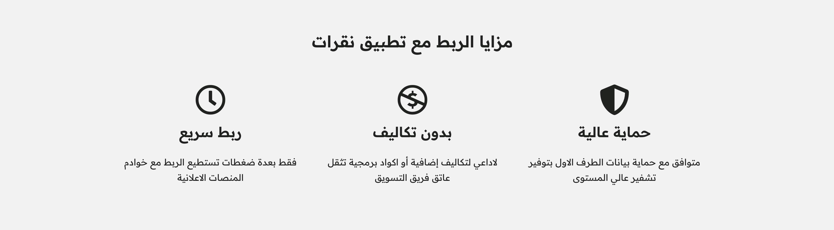 إربط انظمتك الأخرى مثل نقاط البيع ونظام إدارة العلاقات مع نظام نقرات لمتابعة حركة الإحالات المحلية وتحديث بيانات منتجاتك وعملائك مع القنوات التسويقية.
